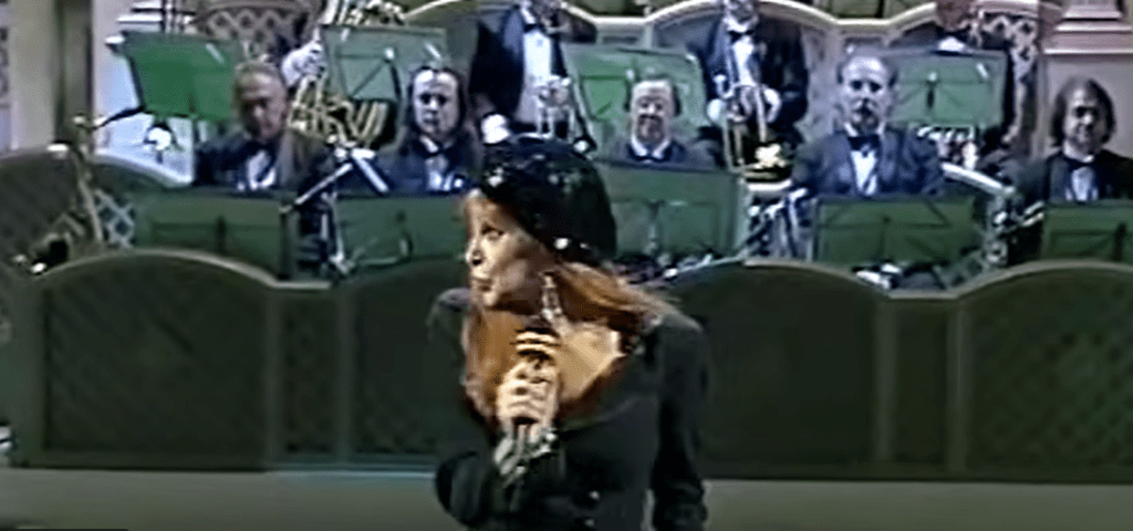 Lo dico subito: lei semplicemente strepitosa, in abito da donna “di mondo” di altri tempi, grande interpretazione teatrale, lei divina anche solo quando scende la scala e si rivolge a Pippo – che fa pure una piccola autocritica del genere maschile. Canzone bella, originale e suggestiva. E la mandano fuori. Se ci fossero stati i social nel 1993, sarebbe stato appropriato un profluvio di “VERGONIA1!!!11!!!”