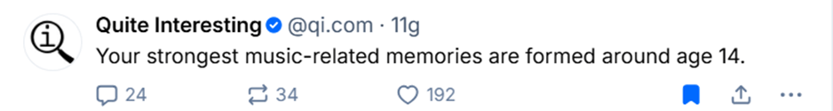 A questo punto posso fare da cavia per l’affermazione scientifica espressa nello skeet e vado di ricognizione delle mie music related memories dei 14. Avranno irrimediabilmente segnato il mio profilo cognitivo? Vado di ricordi e puntualizzo che quest’elenco non è esaustivo in merito a successo o vendite effettive, né tantomeno alla qualità musicale dei brani che mi passano per la testa: seguo solo il flusso dei miei flash mentali.
